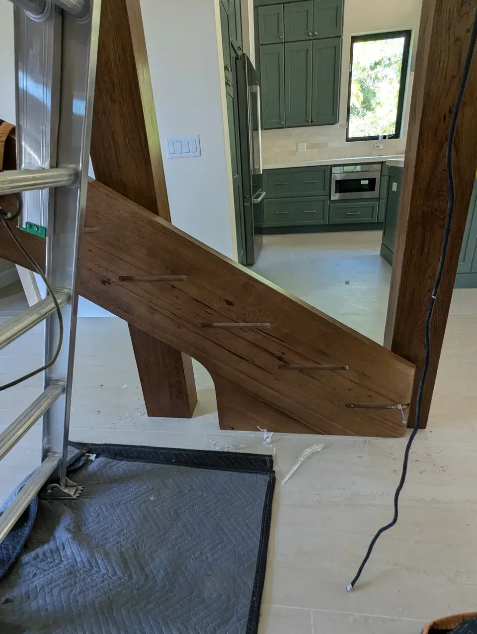 We designed this custom U-shaped staircase for a private residence to coordinate with the "modern cottage" style they envisioned for their Hobe Sound retreat. Balancing rustic and contemporary elements, the staircase pairs the bold character of hickory wood with a sleek floating structure.